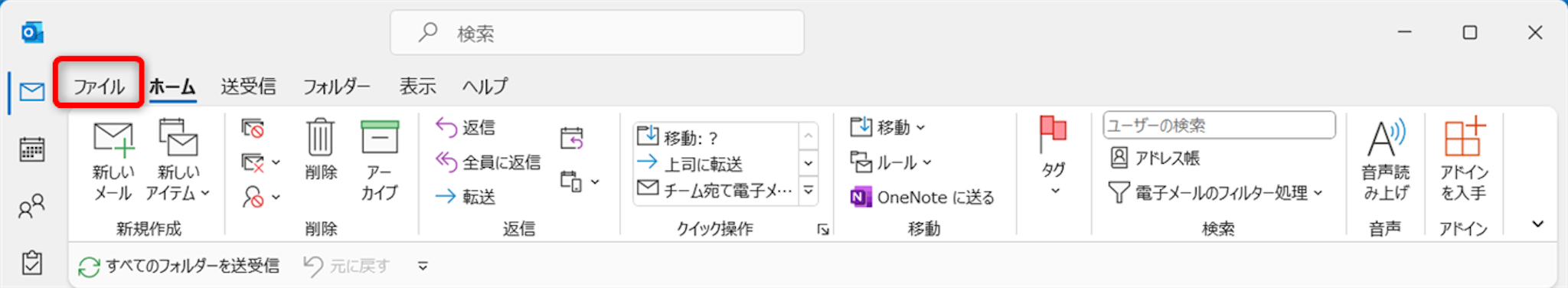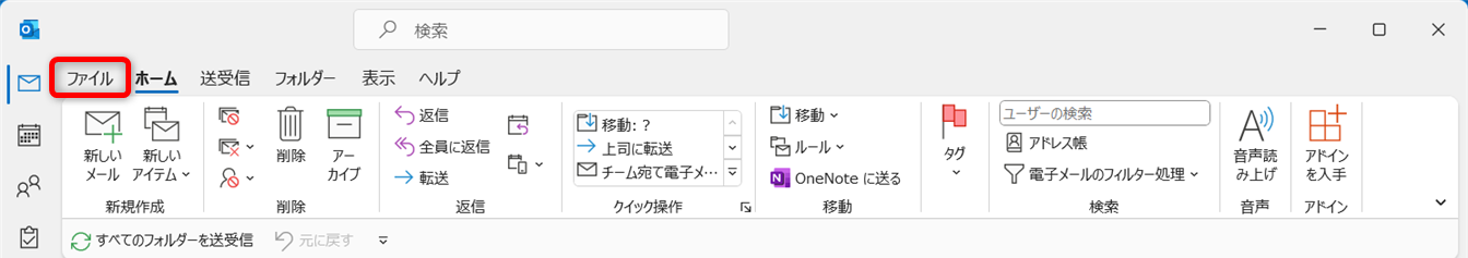 すぐに送受信したい場合は、[送受信タブ]をクリックします。