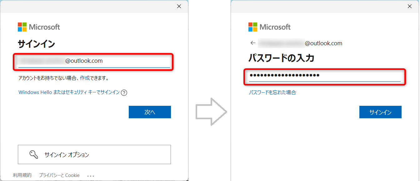 パスワードを入力して[サインイン]をクリックしましょう。