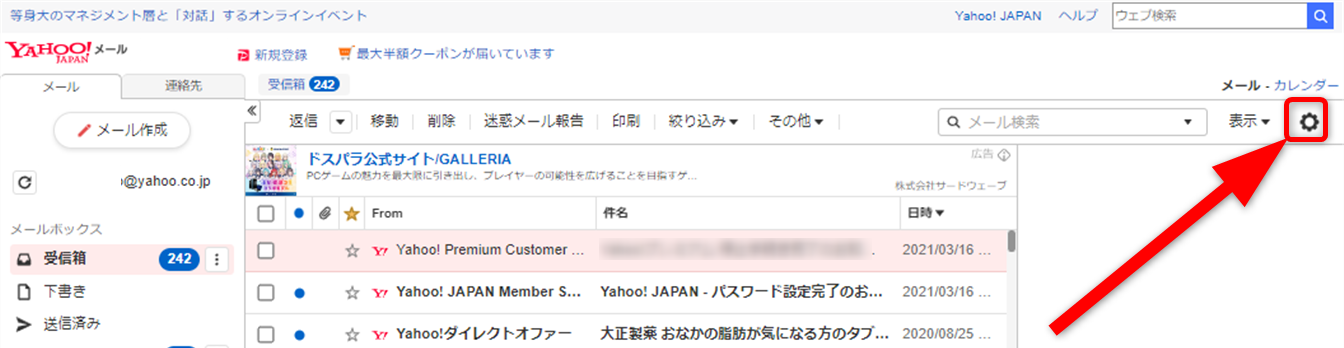 Yahoo!メールを開きます。