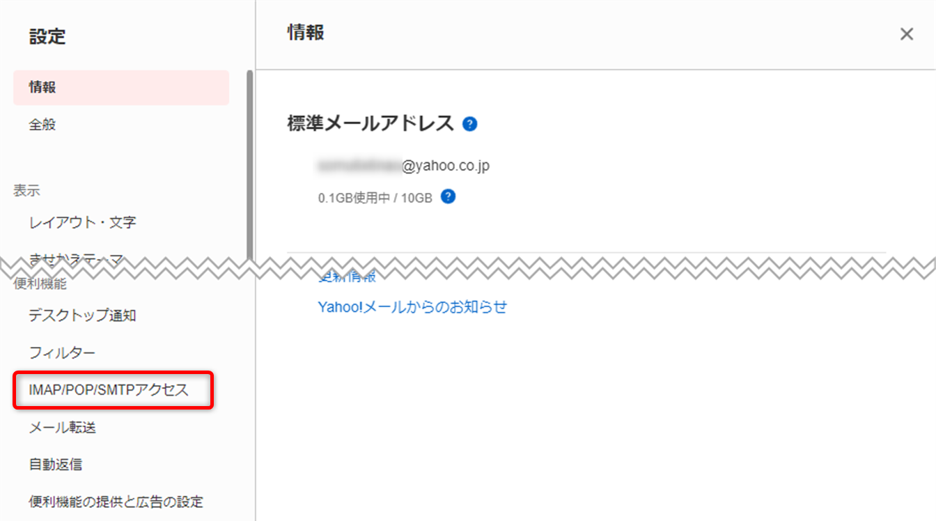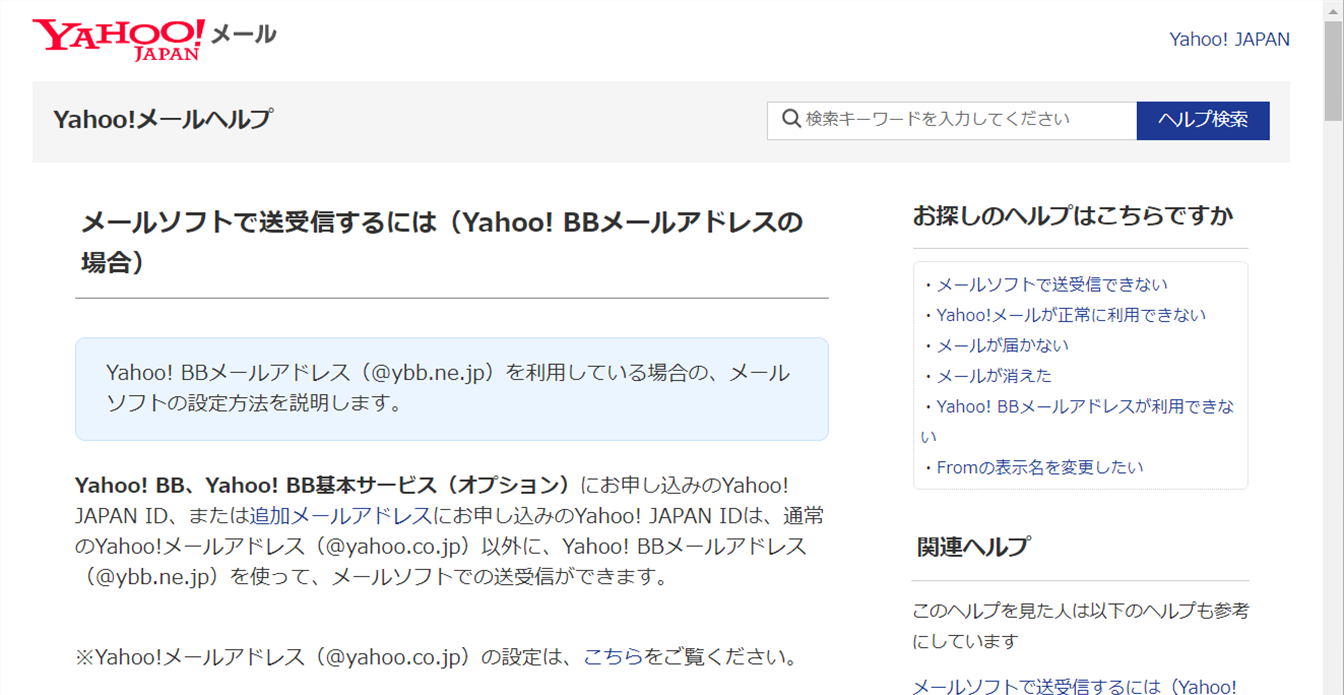 Yahoo!JAPANのメール設定、メール設定に関する詳細はこちらで確認できます。