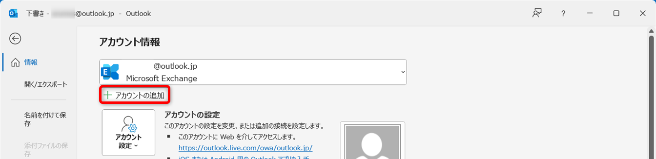 [+アカウントの追加]をクリックします。