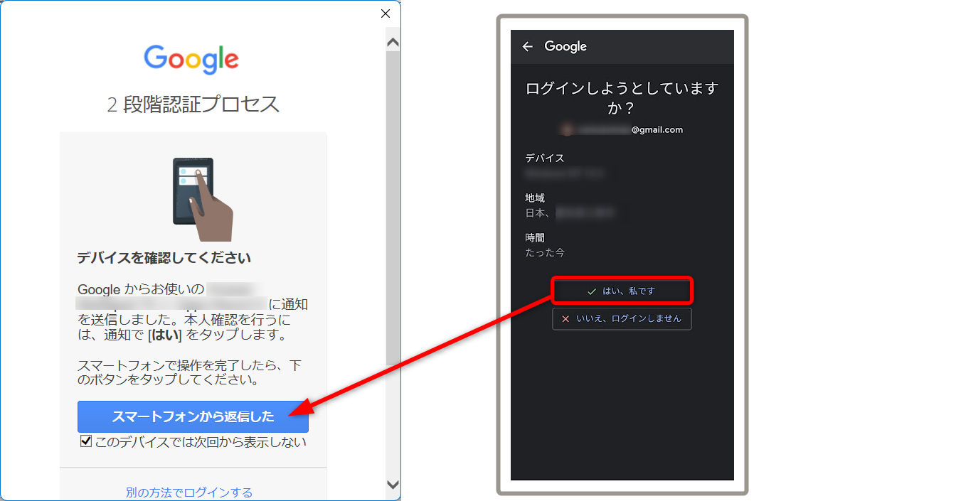 あなたの認証で間違いなければ、[はい、私です]をクリックします。