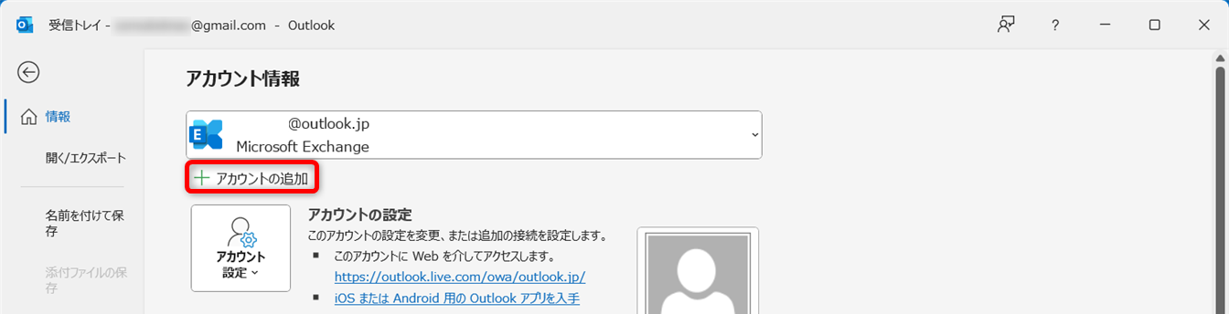 [+アカウントの追加]をクリックしましょう。