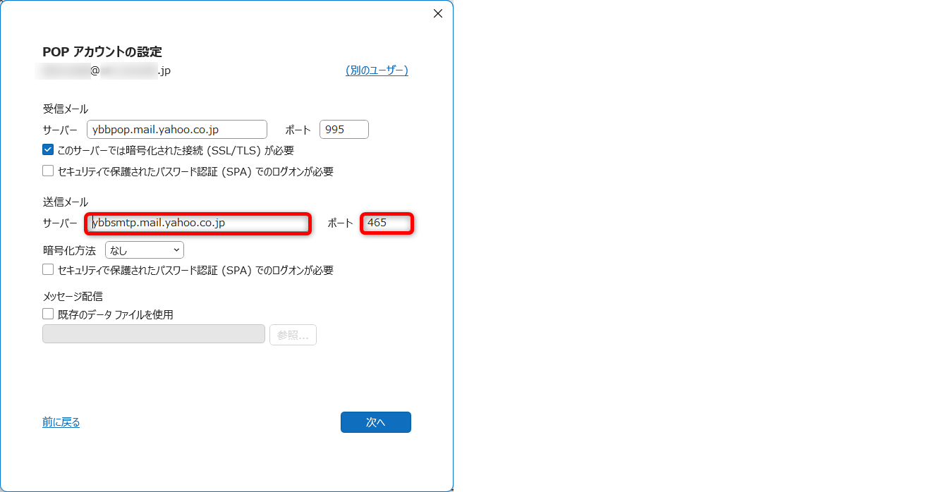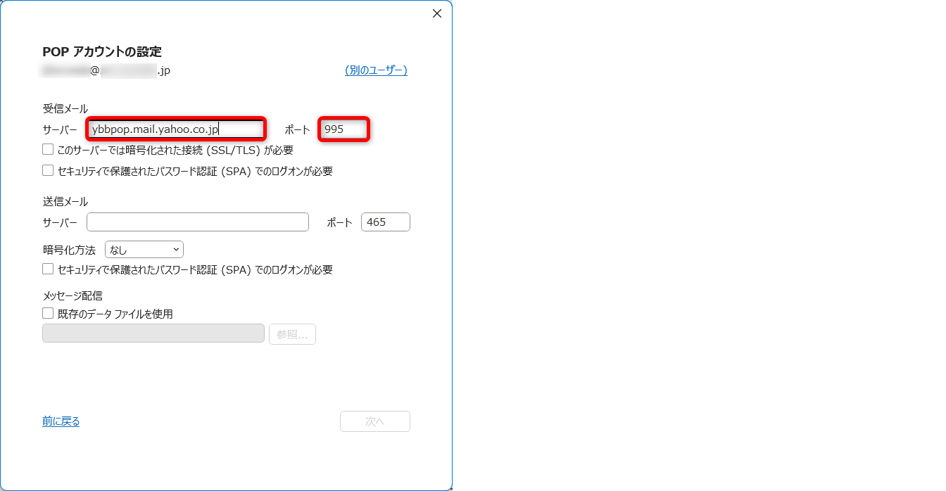 | 受信メールサーバー(POP3) | imap.mail.yahoo.co.jp |