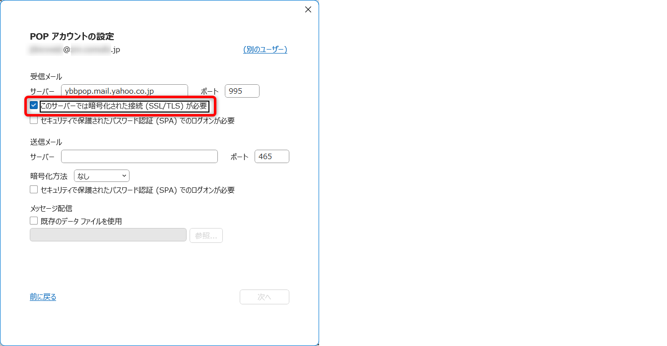 | 暗号化方法 | [SSL/TLS]を選択 |