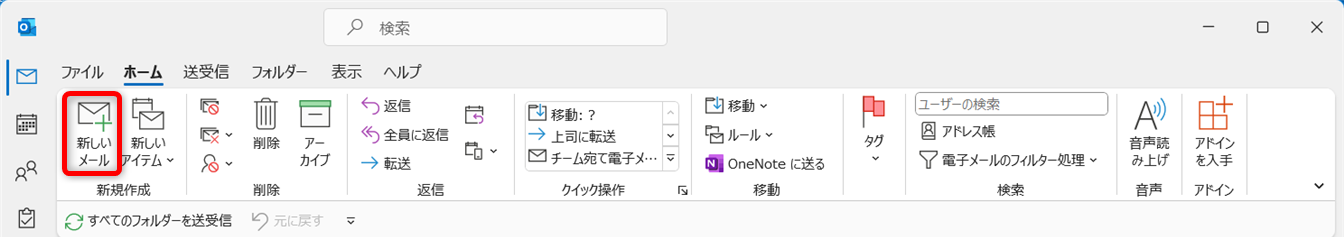 Outlookを開いて、[新しいメール]をクリックします。