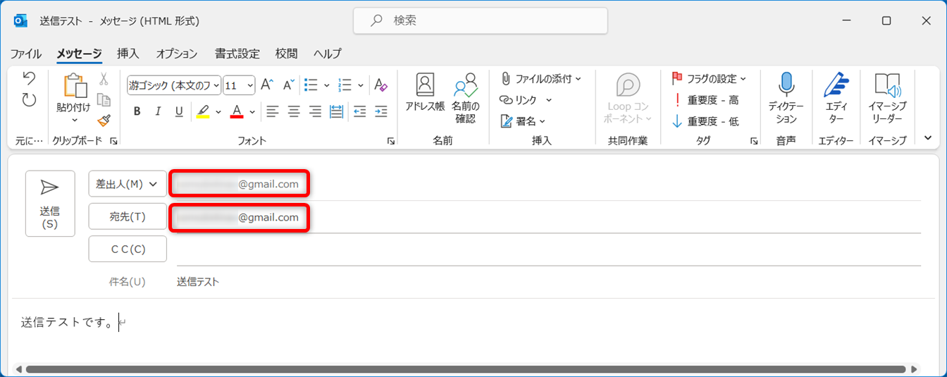 差出人と宛先は同じメールアドレスで大丈夫です。