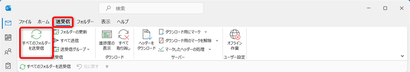 [すべてのフォルダーを送受信]をクリックすると送受信を開始します。