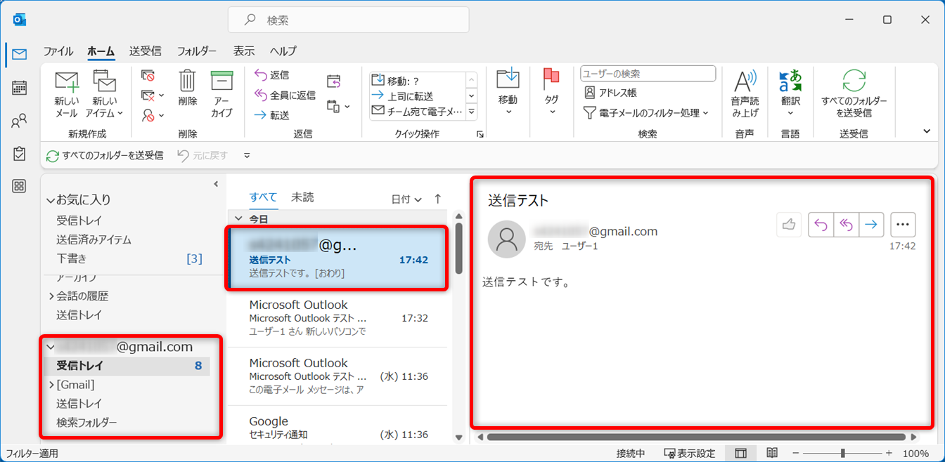 デスクトップ版Outlookにメールを登録したら、念のため送受信テストをしましょう。