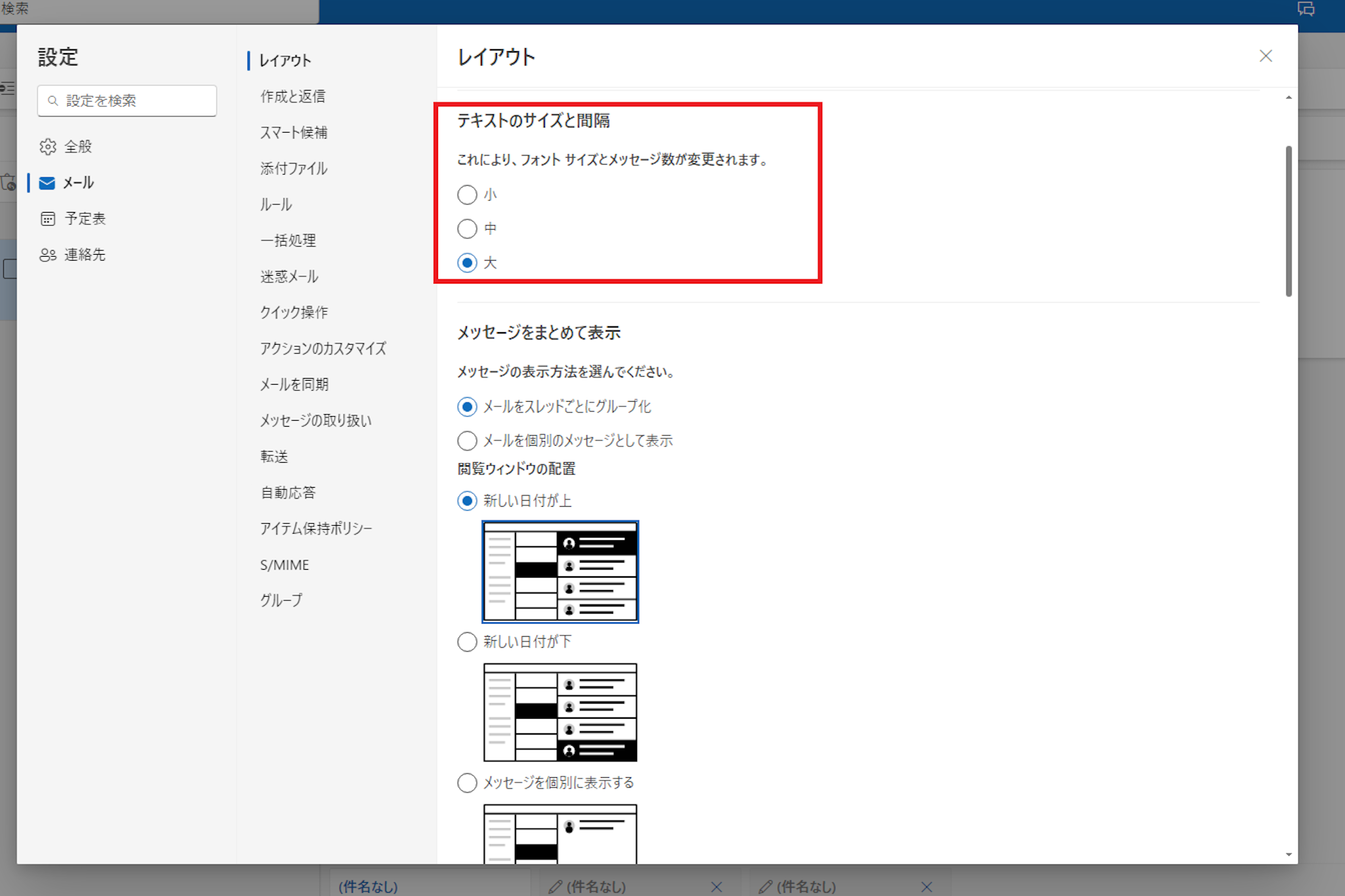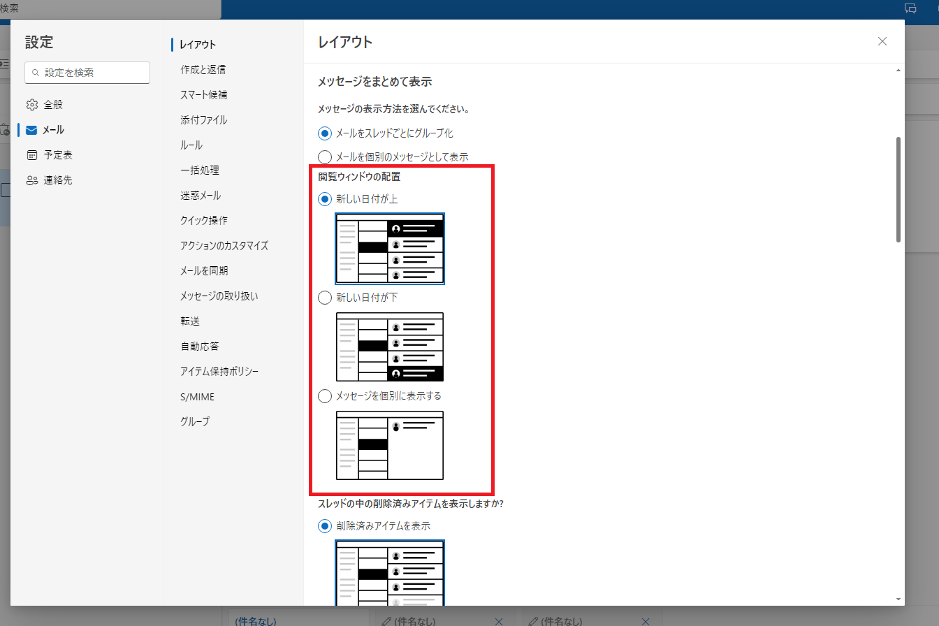 この設定を変更することにより、メール一覧とメール本文の閲覧領域のバランスを調整し、より多くの情報を一目で確認できるようになります。