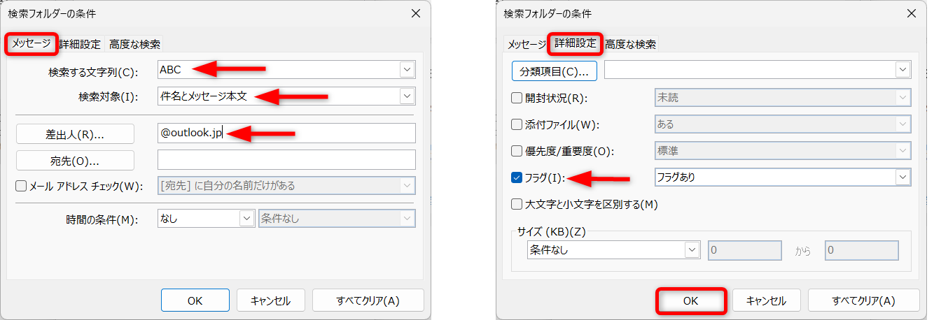 例として、以下の条件にマッチする検索フォルダーを作成します。