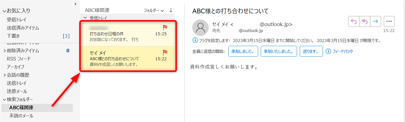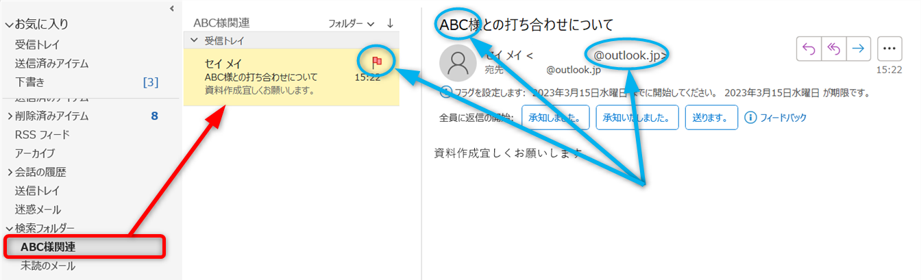 Outlookのフラグや分類機能を組み合わせれば、さらに検索の効果を高めることができます。