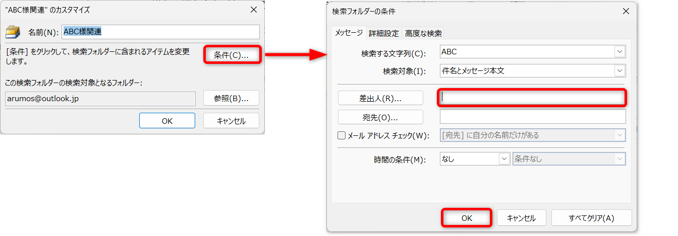 例として、差出人の条件を削除します。