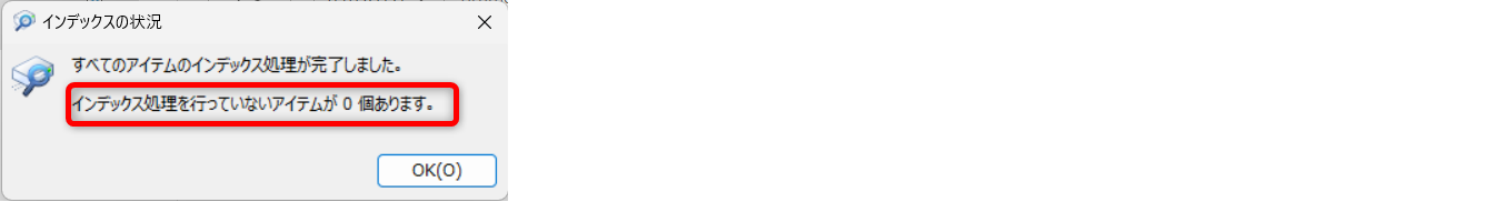 インデックスの再構築が完了したら、[OK]をクリックして閉じます。