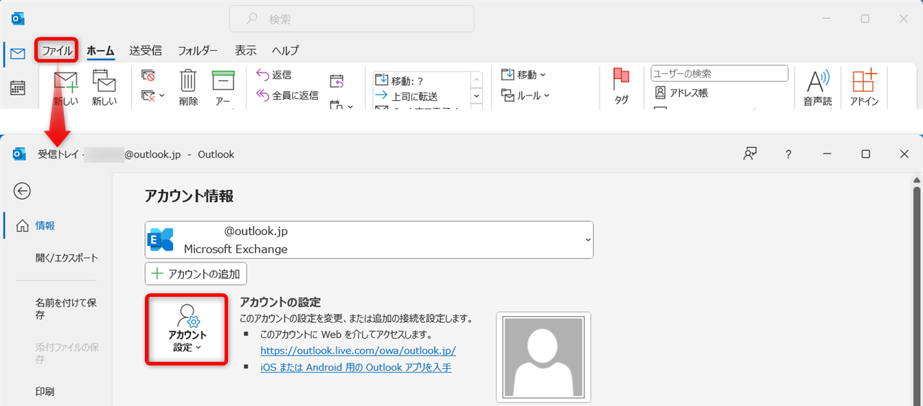 [アカウントの設定]をクリックしましょう。