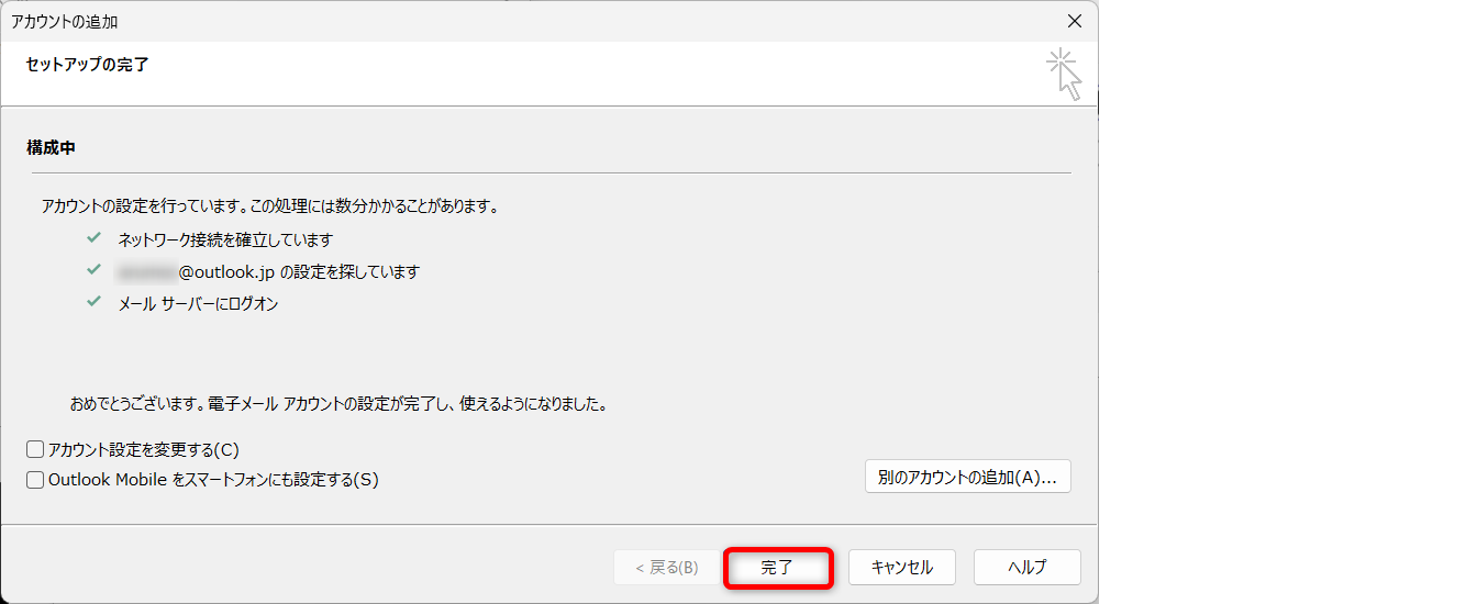 アカウントの設定が完了したら、[完了]を押します。