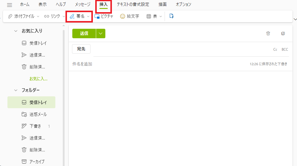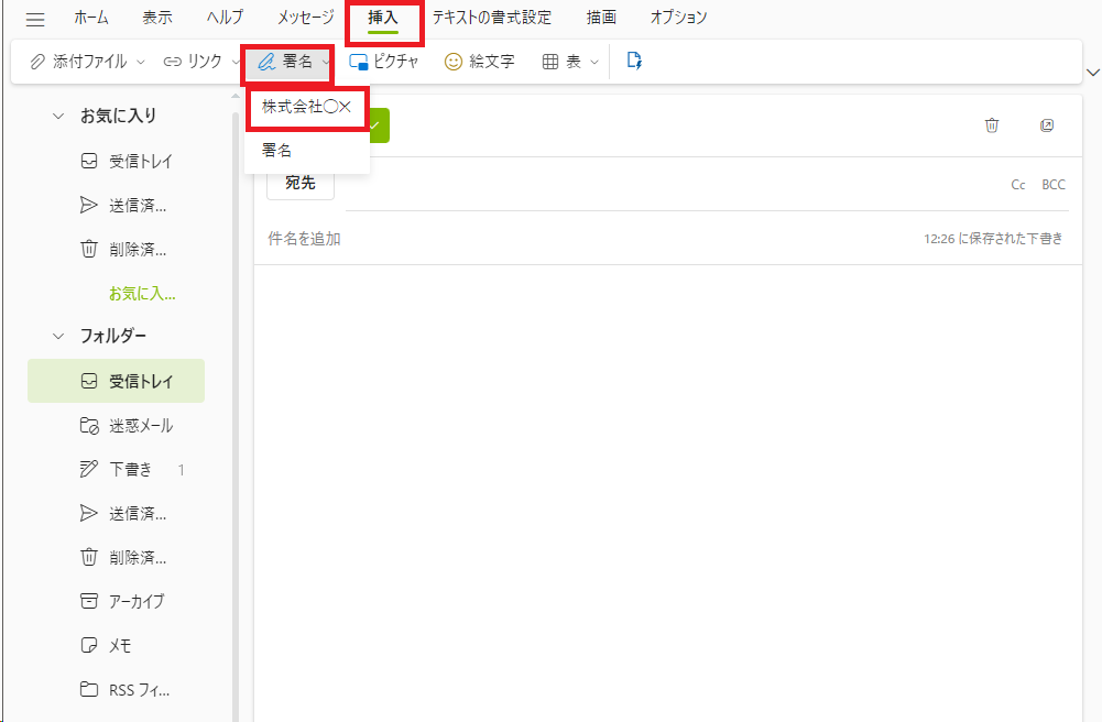 法人でメールを利用する場合など、メール本文に「署名」を挿入したいというケースもあるでしょう。