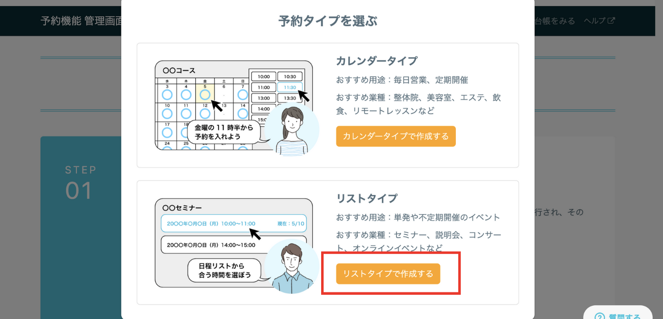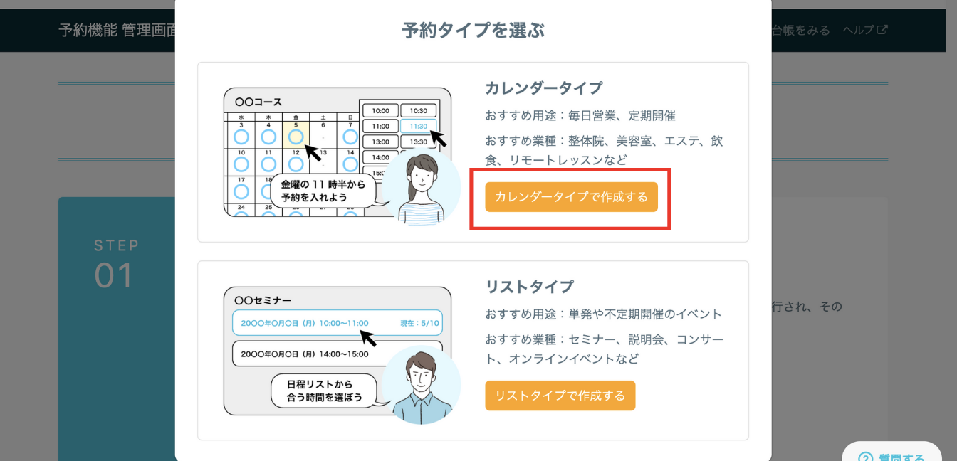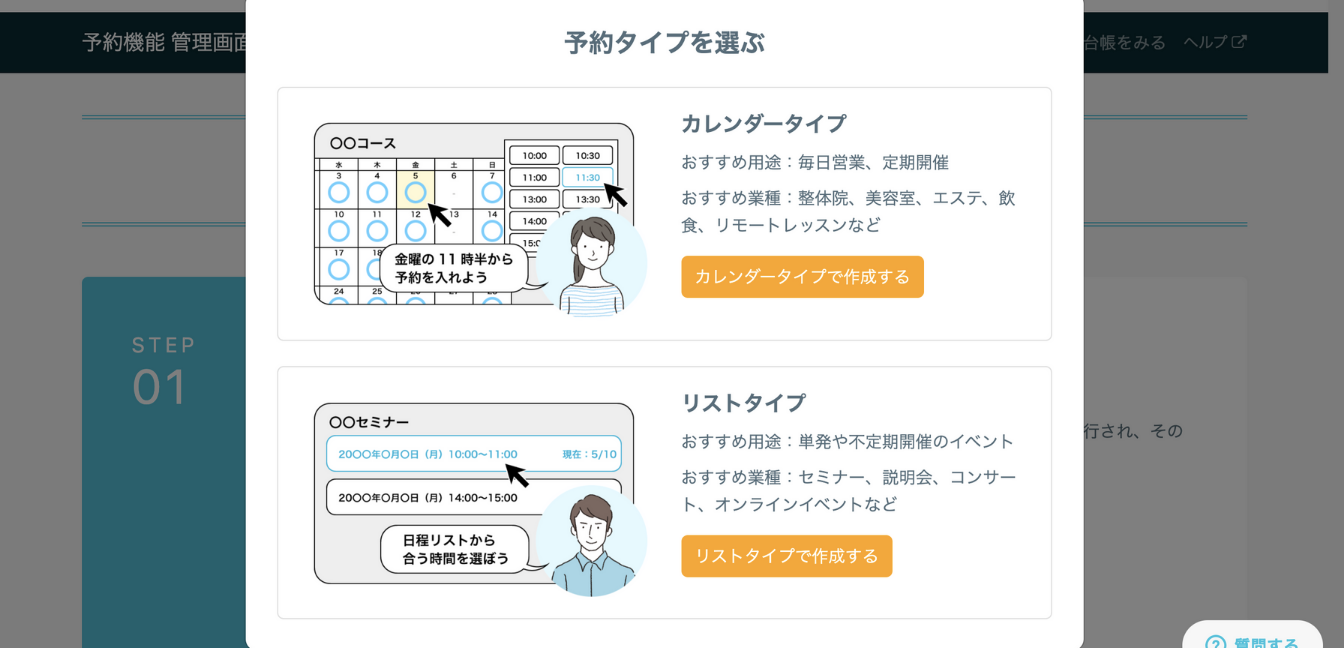 ここからは予約機能についてカレンダータイプとリストタイプに分けて解説します。