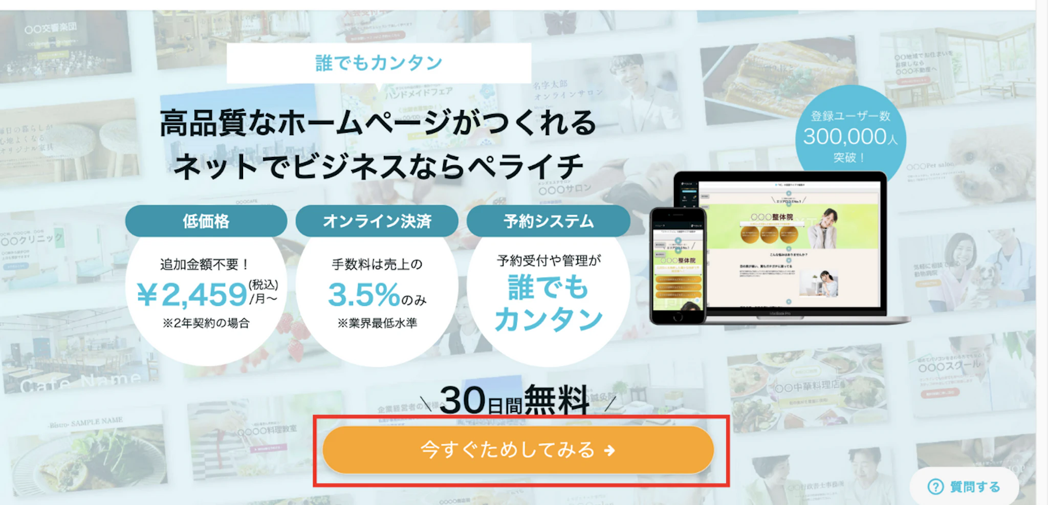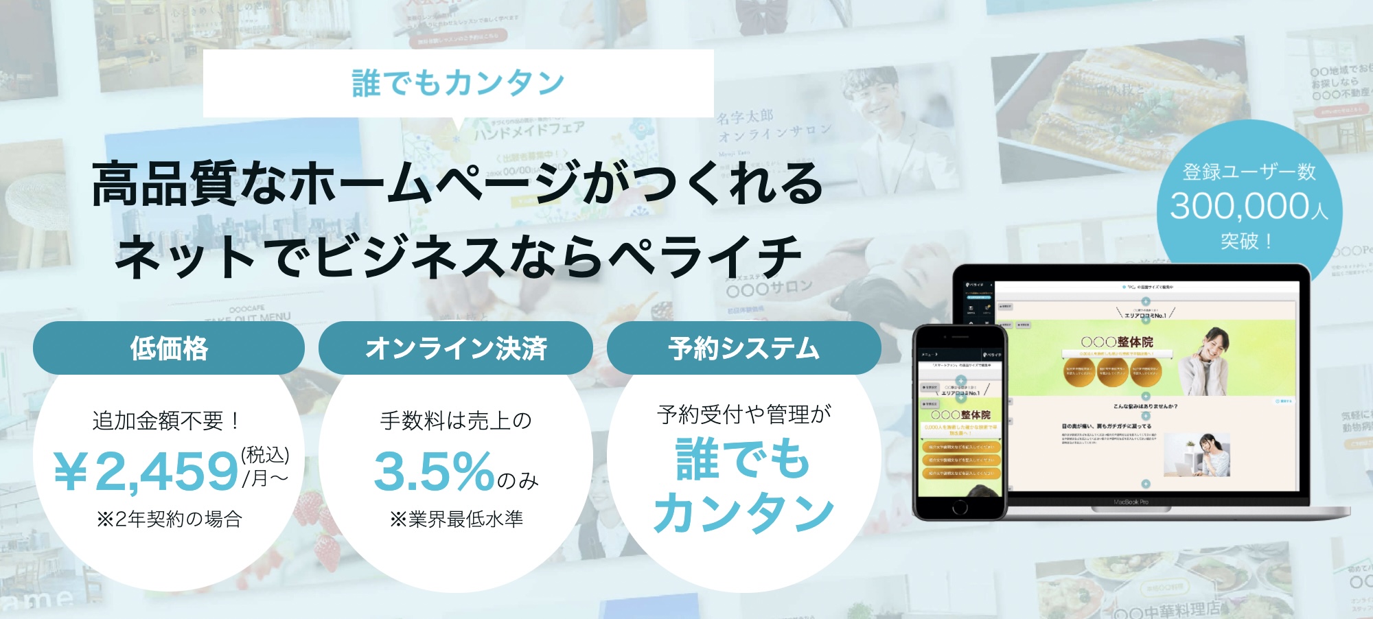 ペライチはお店やサービス、イベントなど、あなた展開するビジネスのホームページを簡単に作ることができるサービスです。
