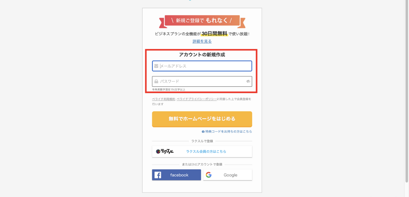 まずはこちらからペライチに登録しましょう。