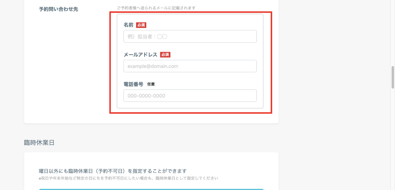 営業日や開催日に合わせて設定しましょう。