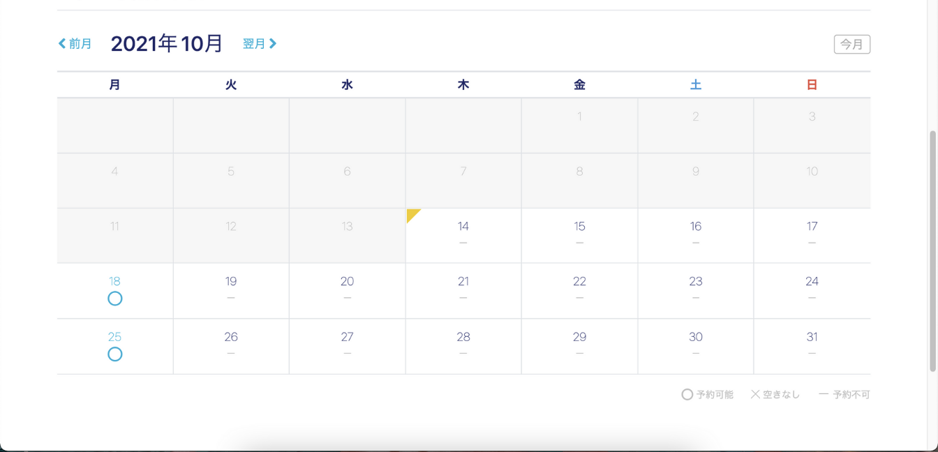 ユーザーが予約するときの画面には予約可能な日程が表示されます。