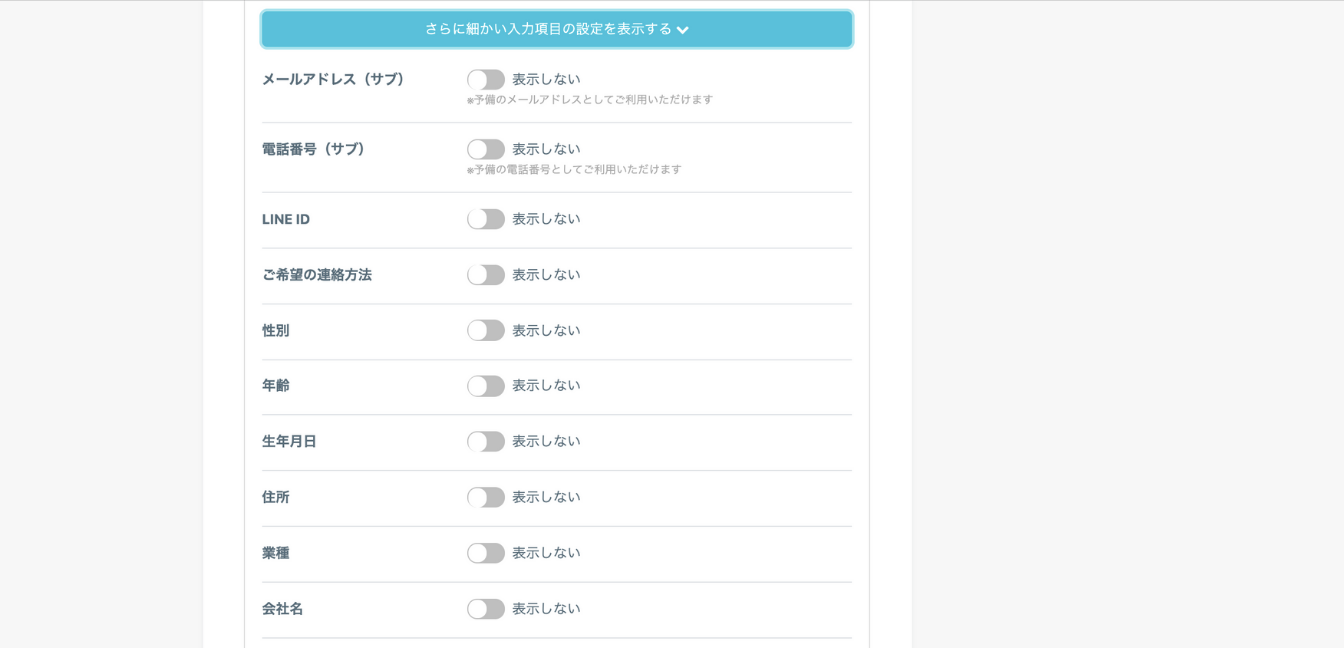 「さらに細かい入力項目の設定をする」をクリックすると、項目内容を追加することができます。