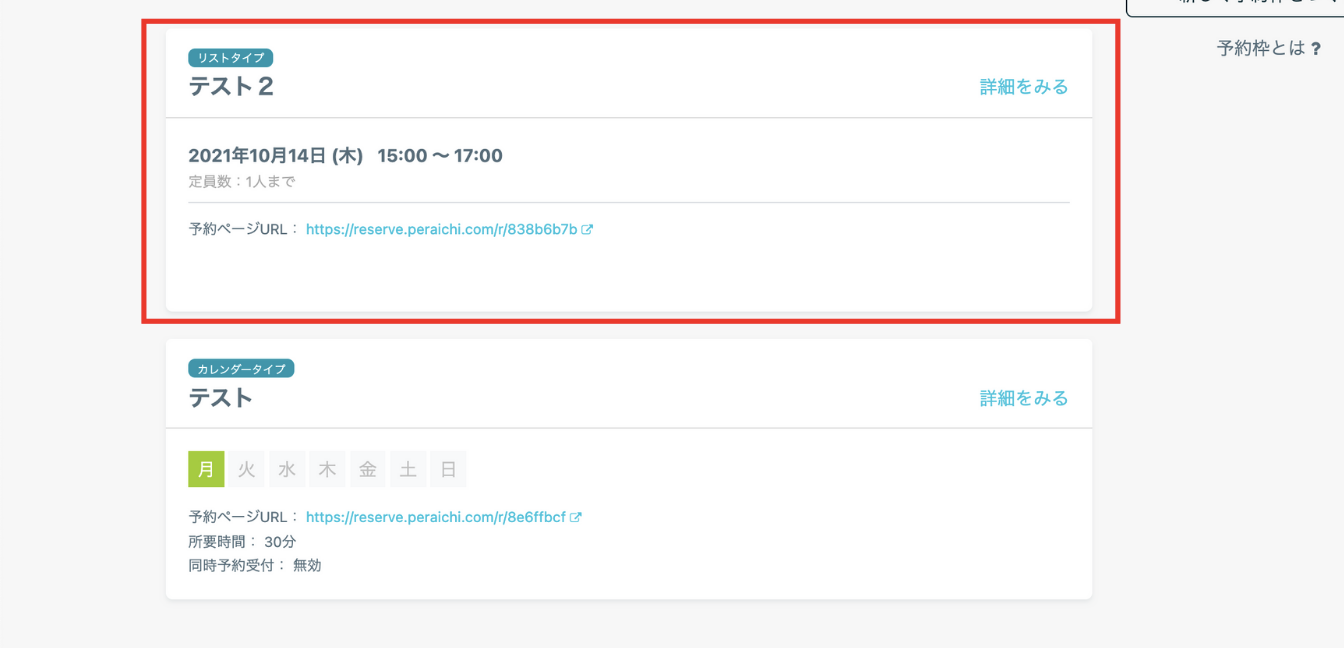 リストタイプは不定期に開催するイベントなどの予約を受け付けたい人に向いています。