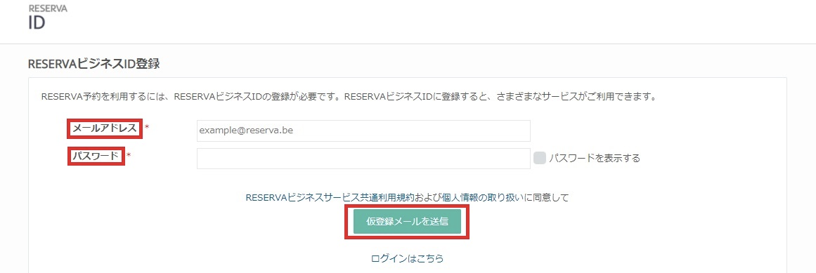 「メールアドレス」と「パスワード」を入力して、「仮登録メールを送信」をクリックしてください。