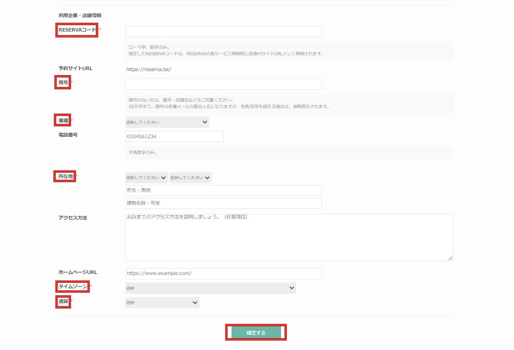 入力が完了したら「確定する」をクリックしてください。