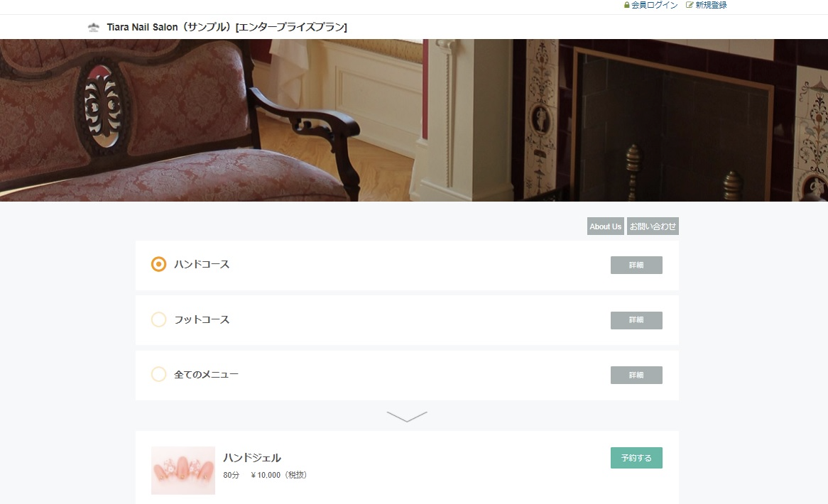 「サンプル」をクリックするとサンプルの予約サイトを閲覧可能です。