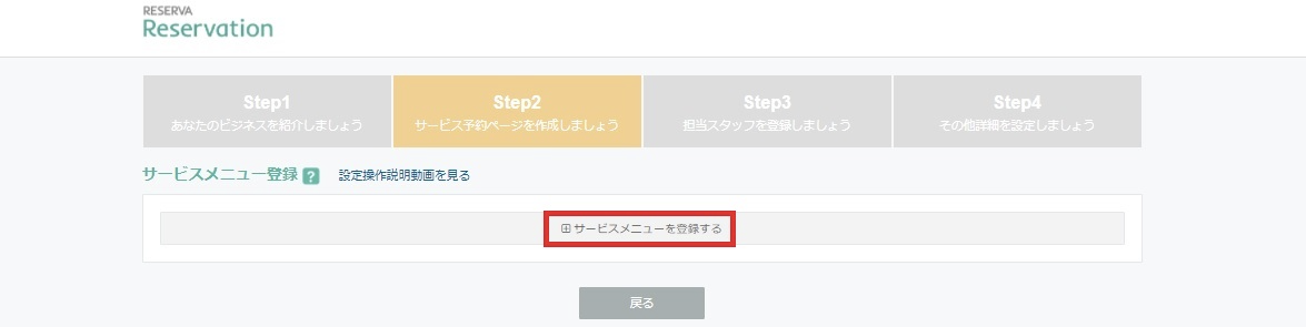 続いてサービスメニューの登録に移ります。