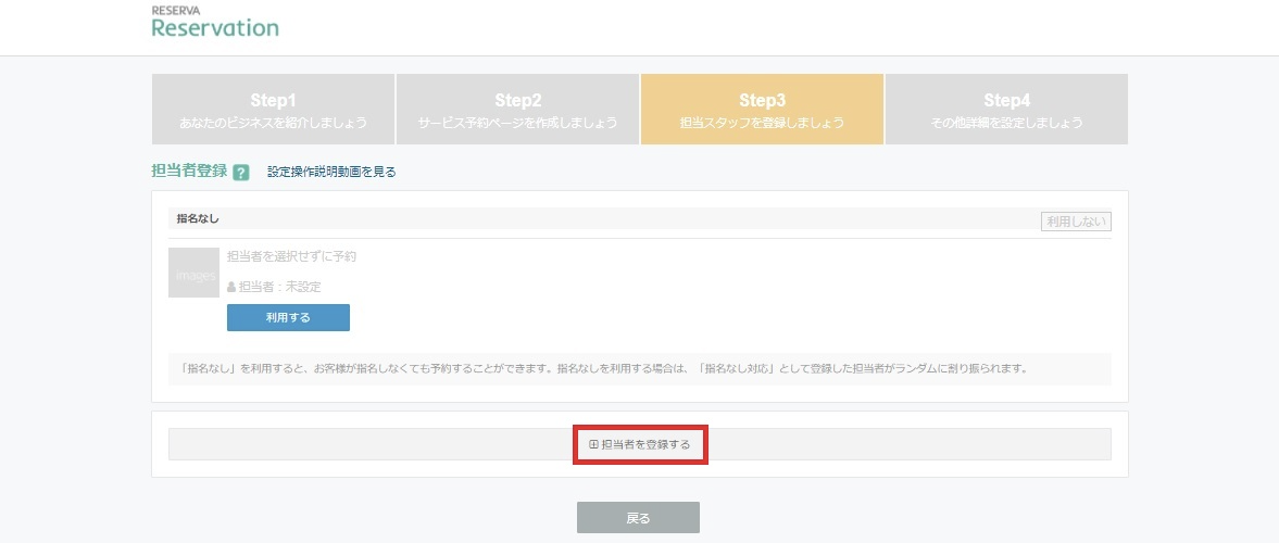 続いて担当者登録をしていきます。「担当者を登録する」をクリックしましょう。