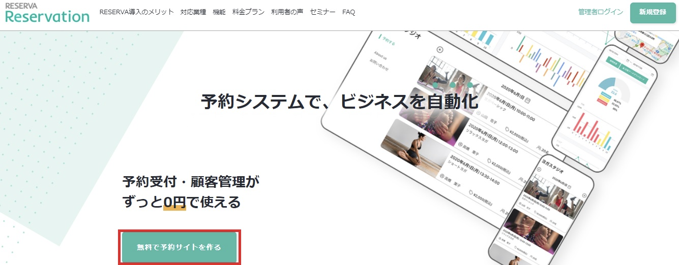 「無料で予約サイトを作る」をクリックします。