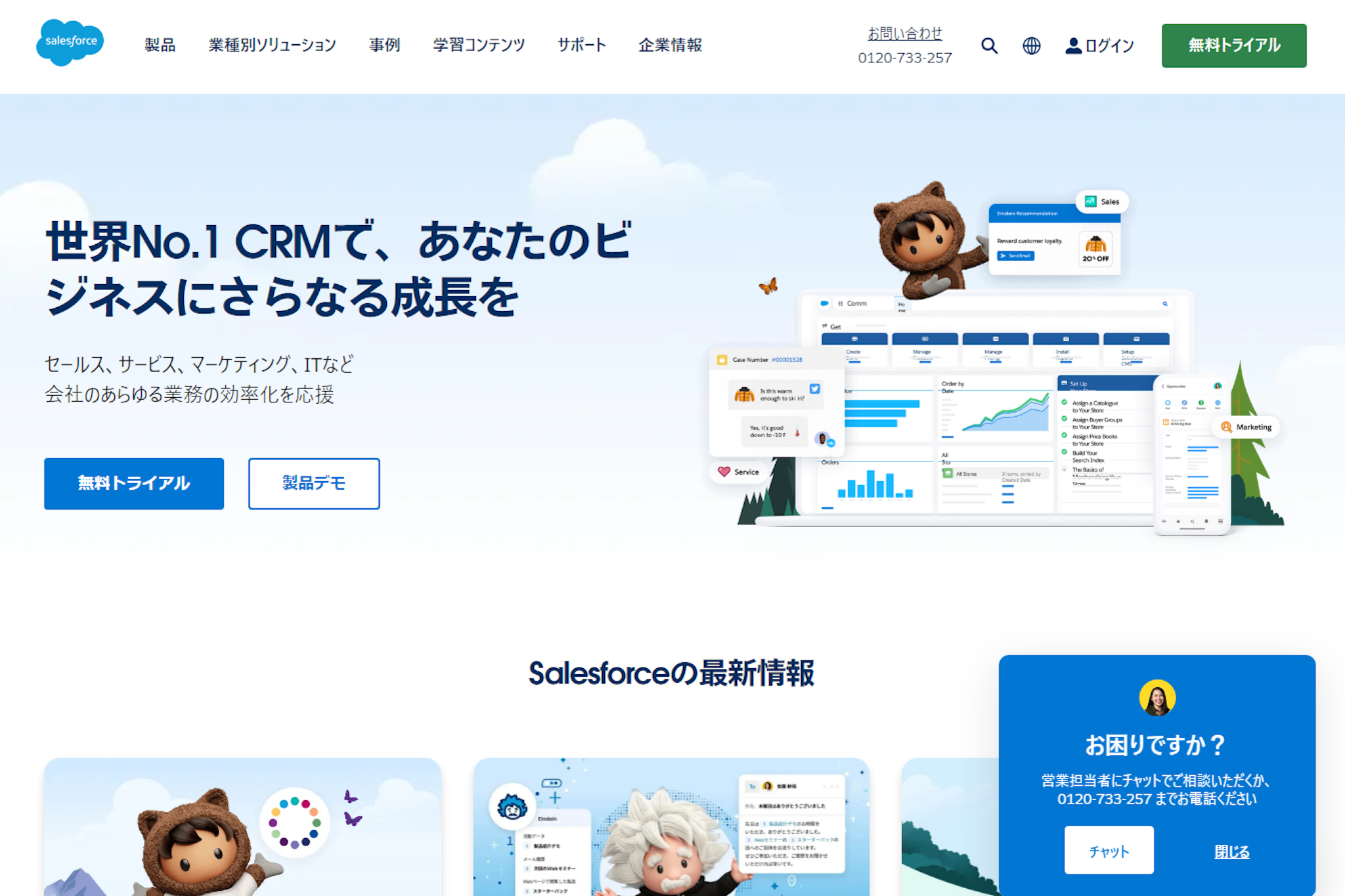 世界No.1シェアを誇り、18万社以上の企業が導入するクラウド型CRM(顧客関係管理)ツールは、営業活動を支援するSFAとしても有名です。豊富な機能と多くのサードパーティ製アプリとの連携が可能な高い拡張性があり、グローバル対応も充実しています。