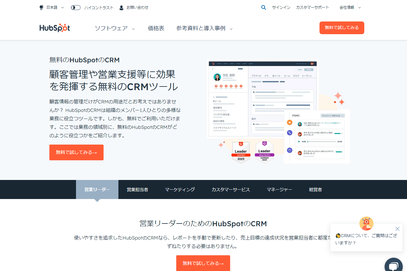 セールスプロセスを効率化する機能が豊富であり、リードの追跡、タスクの管理、電子メールの自動化などをサポートしています。