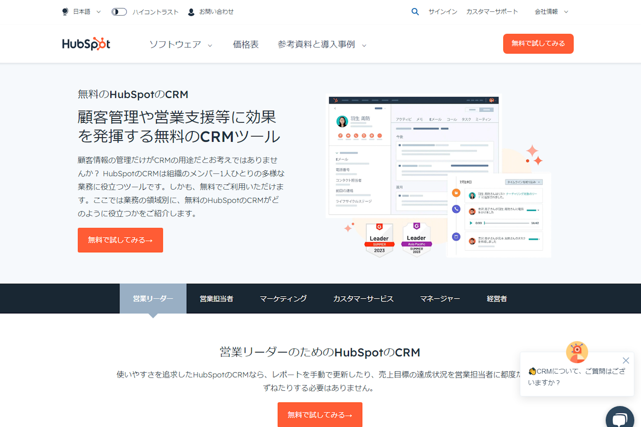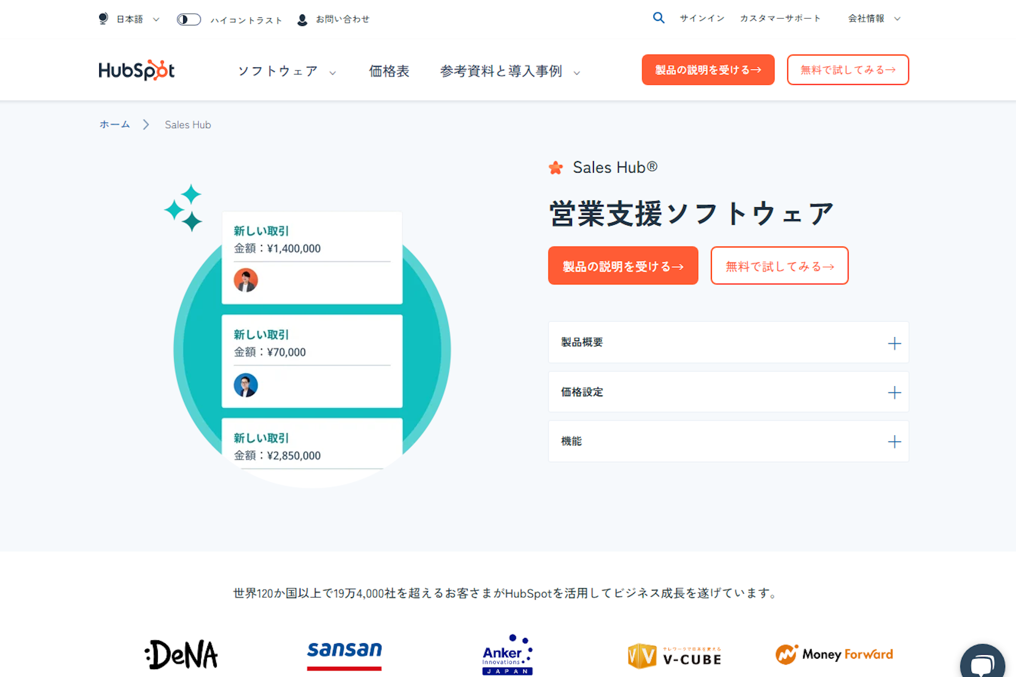 HubSpot CRMの一部として提供されるセールス自動化ツールです。中小企業から大企業まで幅広い規模の企業に対応しています。
