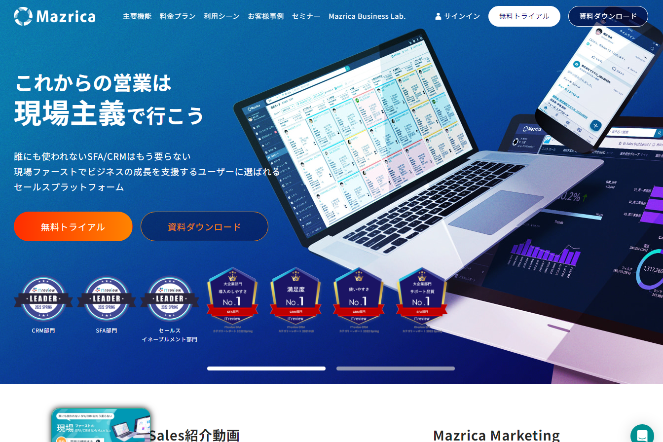 SFA/CRMであるMazrica Sales (旧 Senses)はセールスエンゲージメント機能もあります。顧客とのコミュニケーション履歴を分析し、最適なタイミングで最適なメッセージを顧客に送信する機能があり、関係構築に役立つ機能を提供しています。