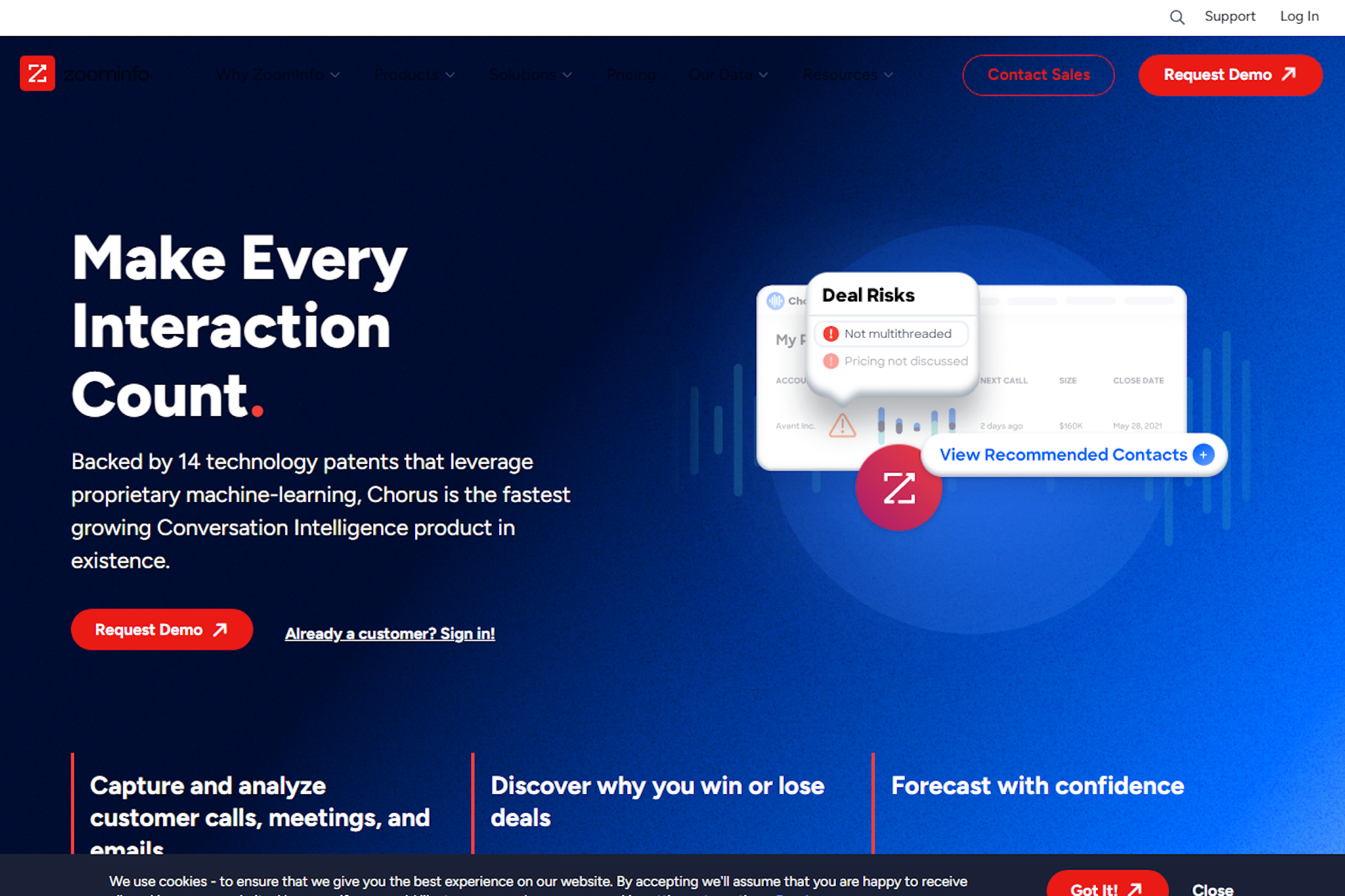 会話分析を活用したセールスコーチングおよびインテリジェンスプラットフォームです。セールスチームが行った会話を録音し、分析して洞察を提供し、成果を最適化します。