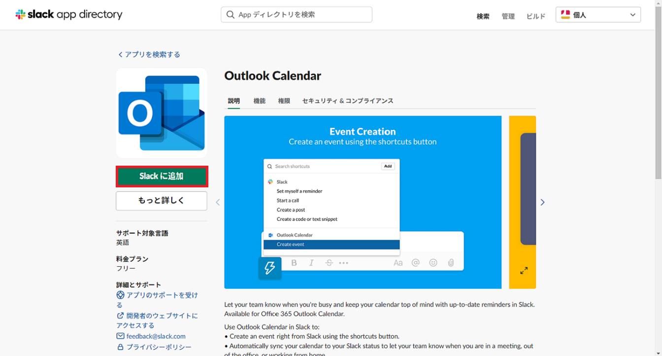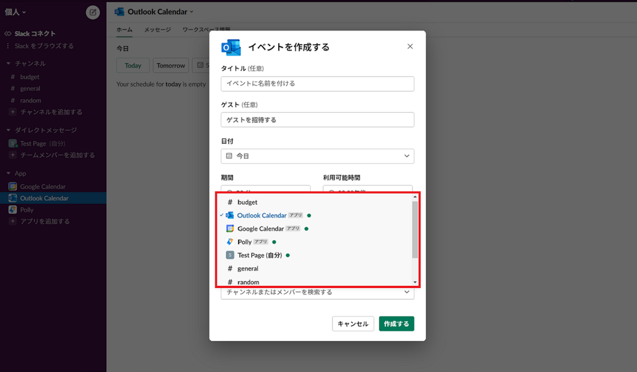使い方は、Googleカレンダーと同様で、Slack上でOutlookのスケジュールが作れるようになります。