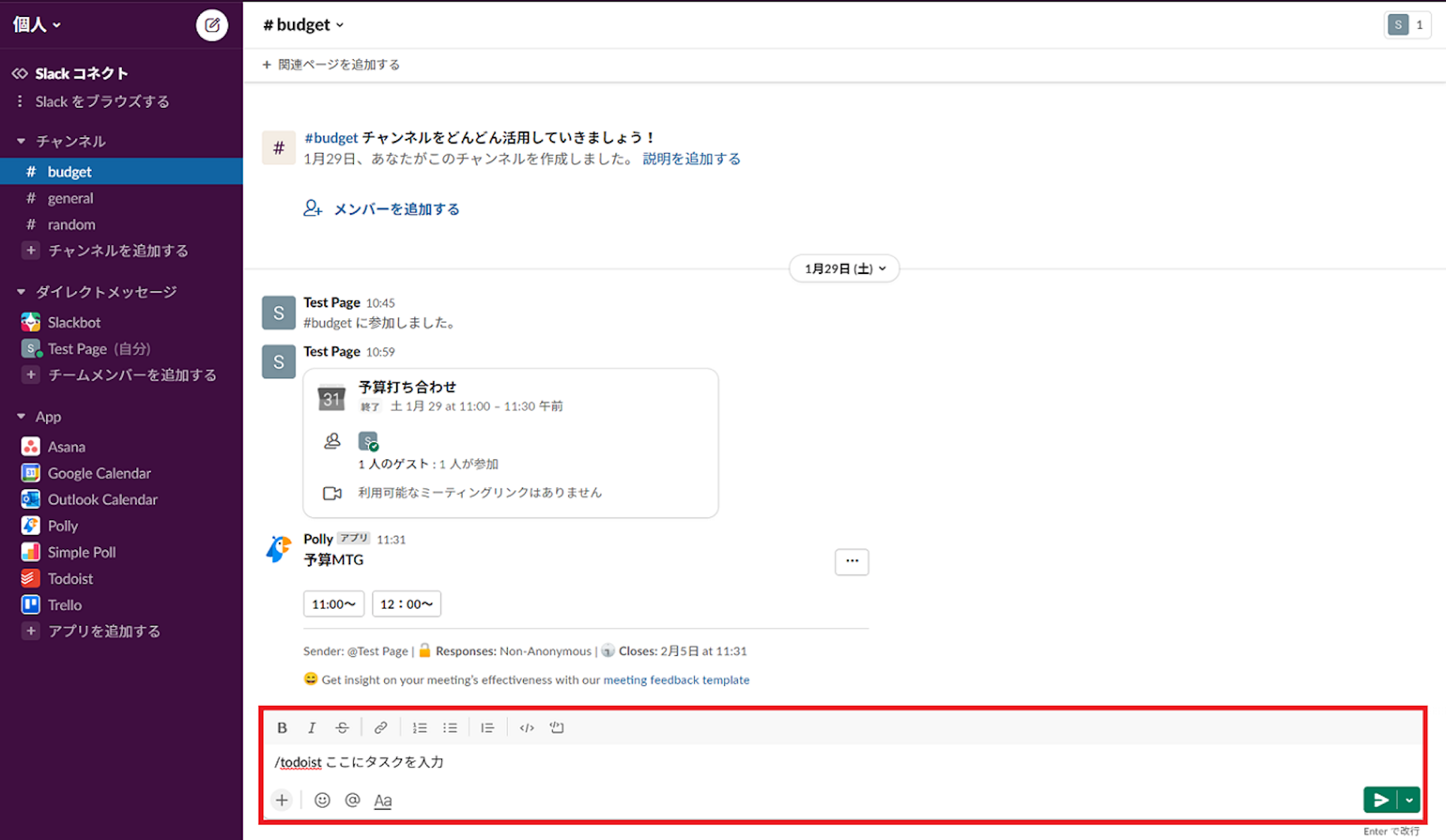 Slackにインストールされたら、プロジェクトページにTo Doを追加します。