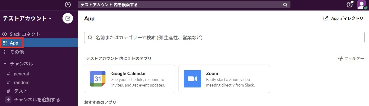 「App」では連携できる他社のツールの一覧が表示されてます。