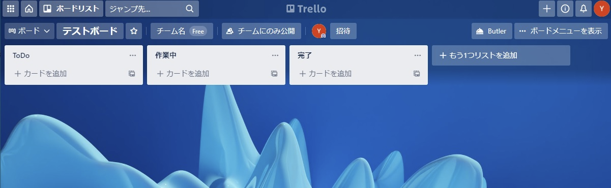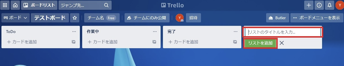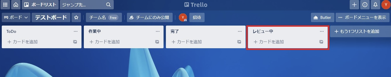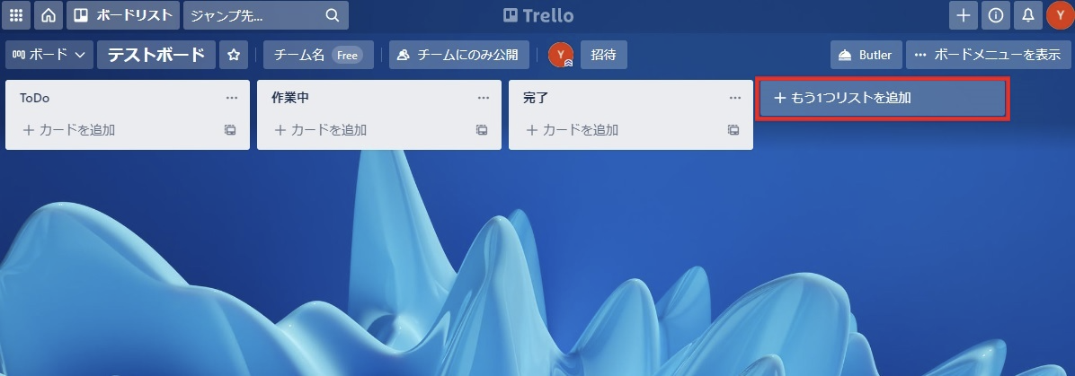 作成したボードから「もう1つのリストを追加」をクリックしてください。