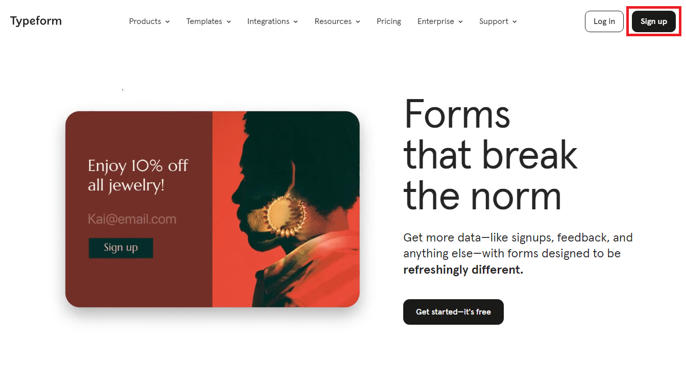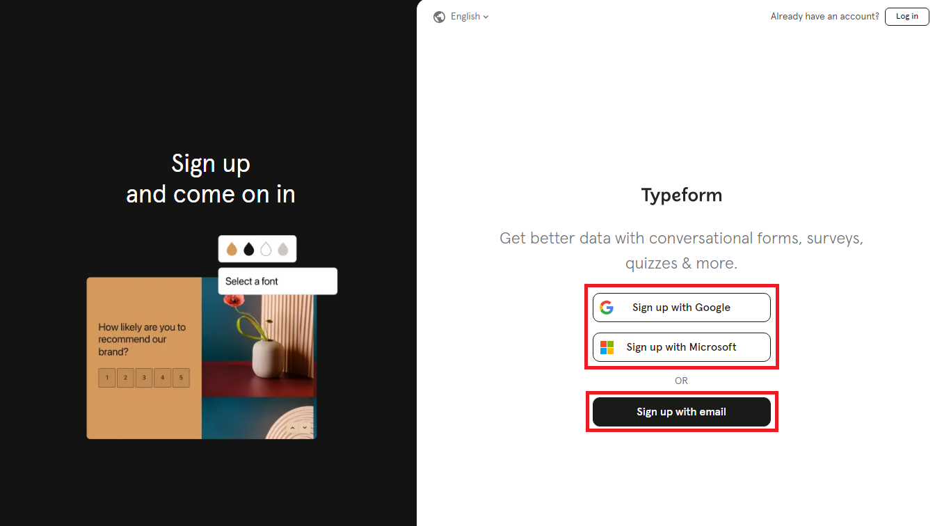 Typeformを始めるために、公式サイトにアクセスしてアカウントを作成します。