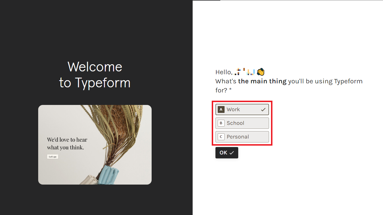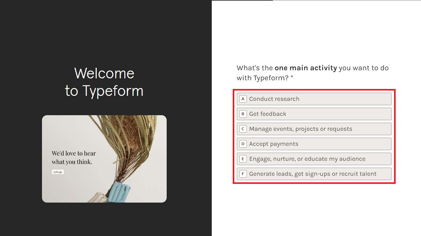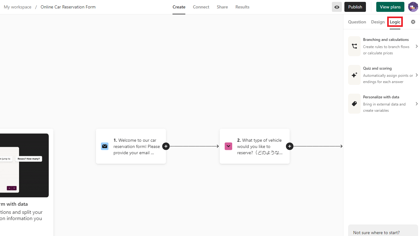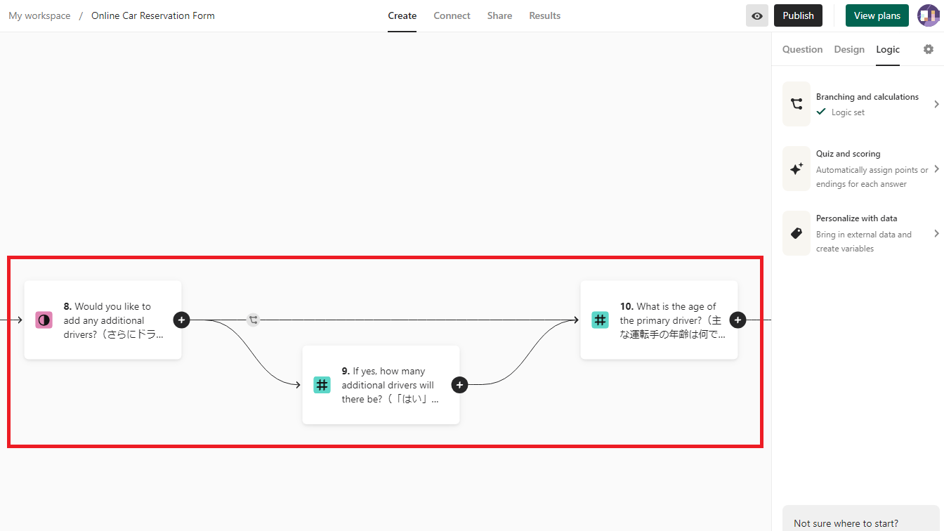 Typeformには、回答者の入力に基づいてフォームの質問と回答フローをカスタマイズするための機能があります。