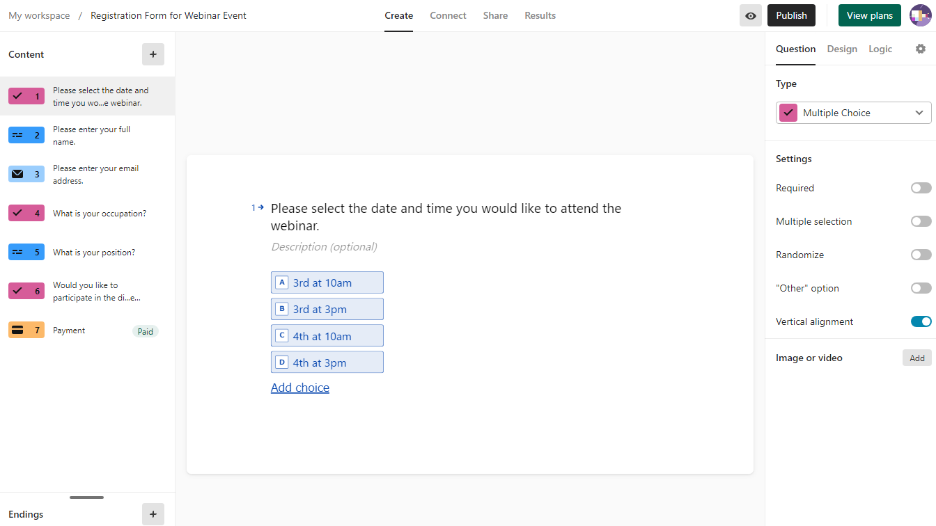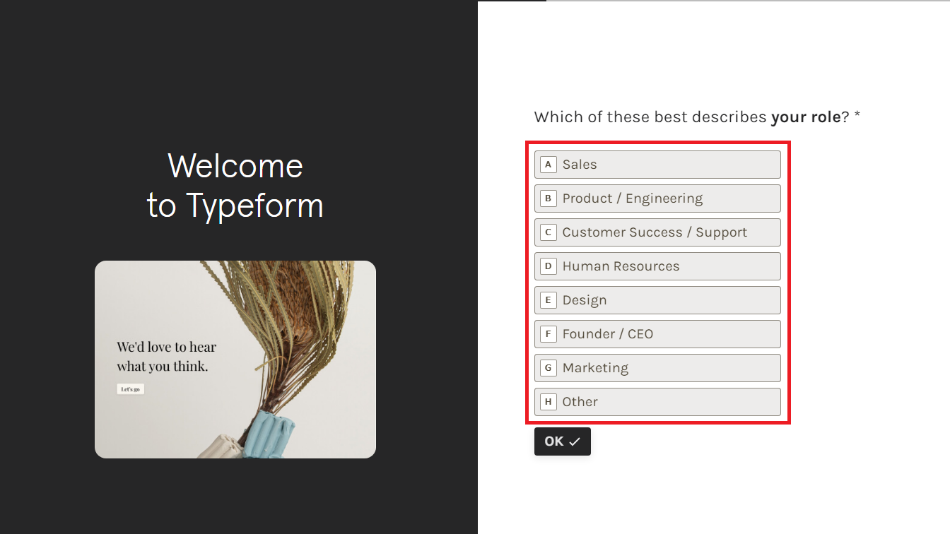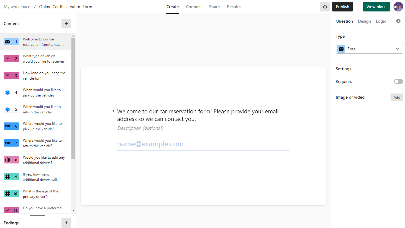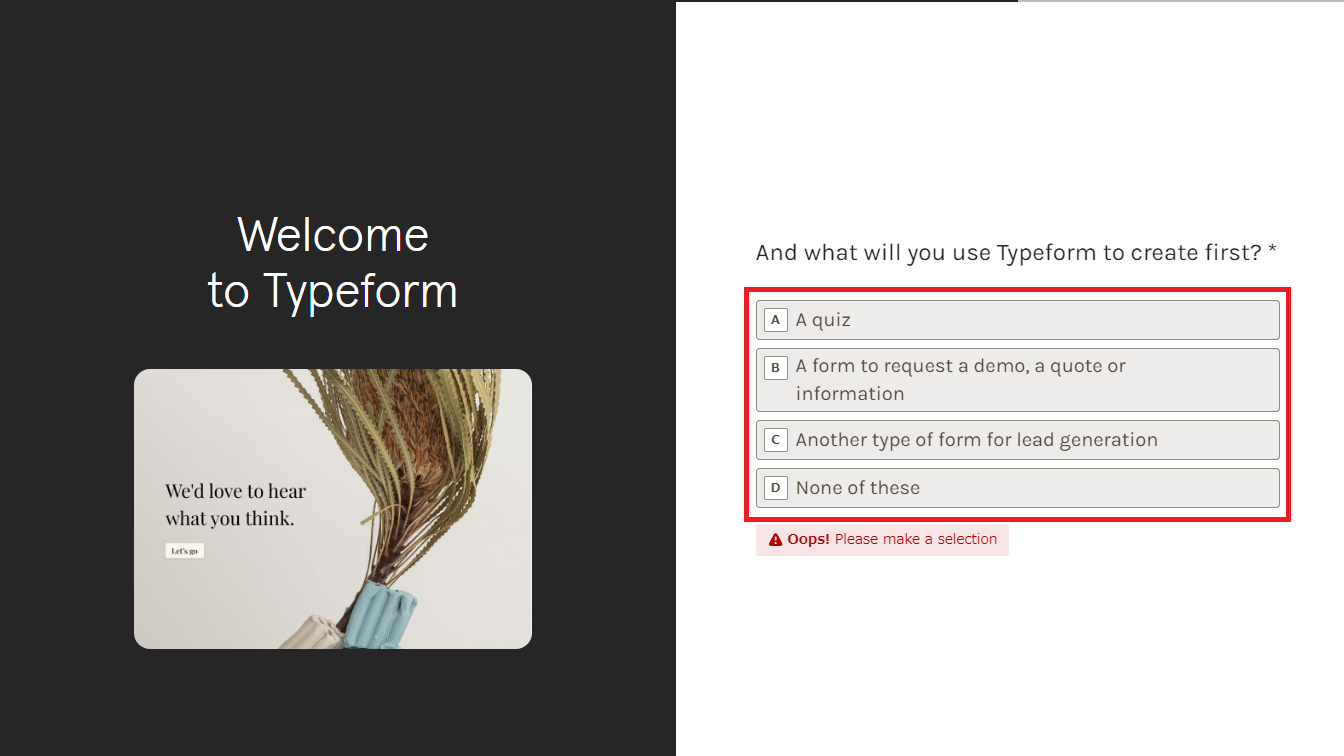Typeformには、回答者の入力に基づいてフォームの質問と回答フローをカスタマイズするための機能があります。
