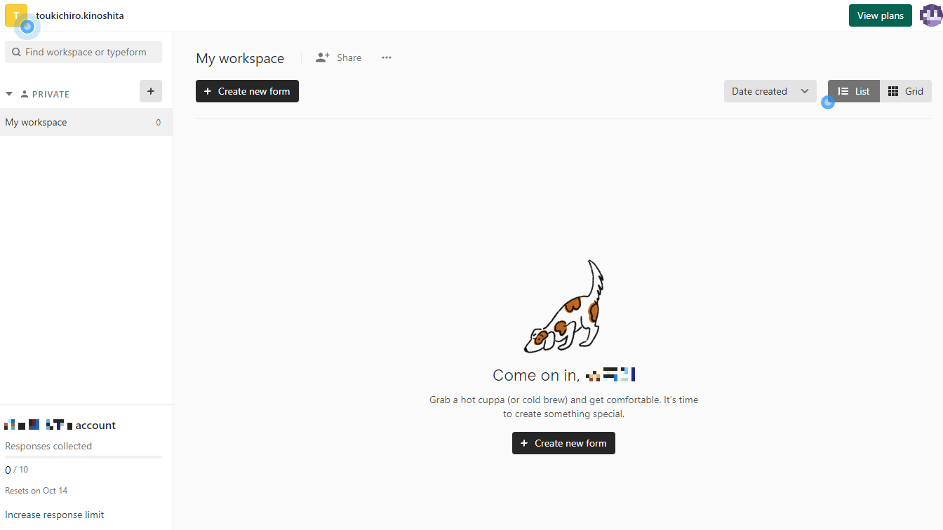 作成完了後は画面左上の「My workspace」でトップ画面に戻ると、画面中央に作成されたフォームが表示されます。