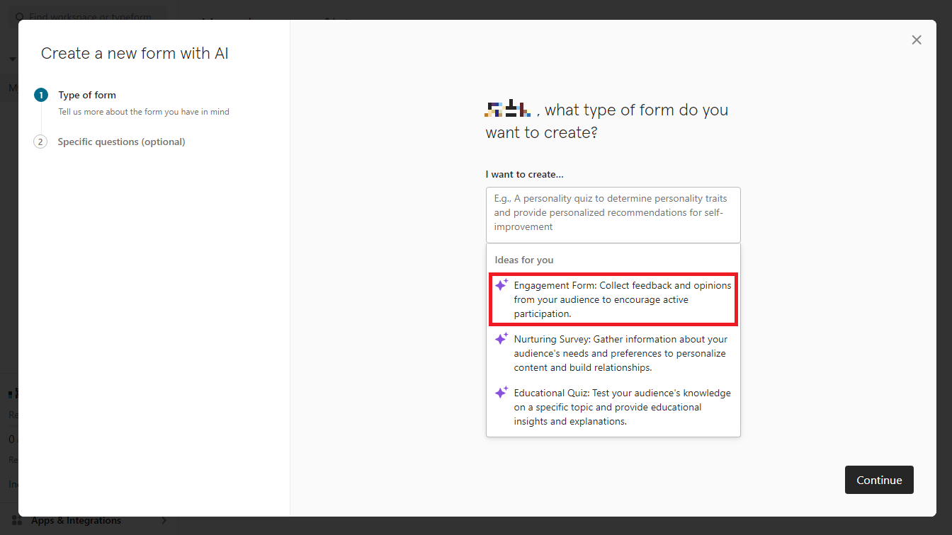 今回はユーザーからのフィードバックや意見を集めるフォーム「Engagement Form」を利用します。
