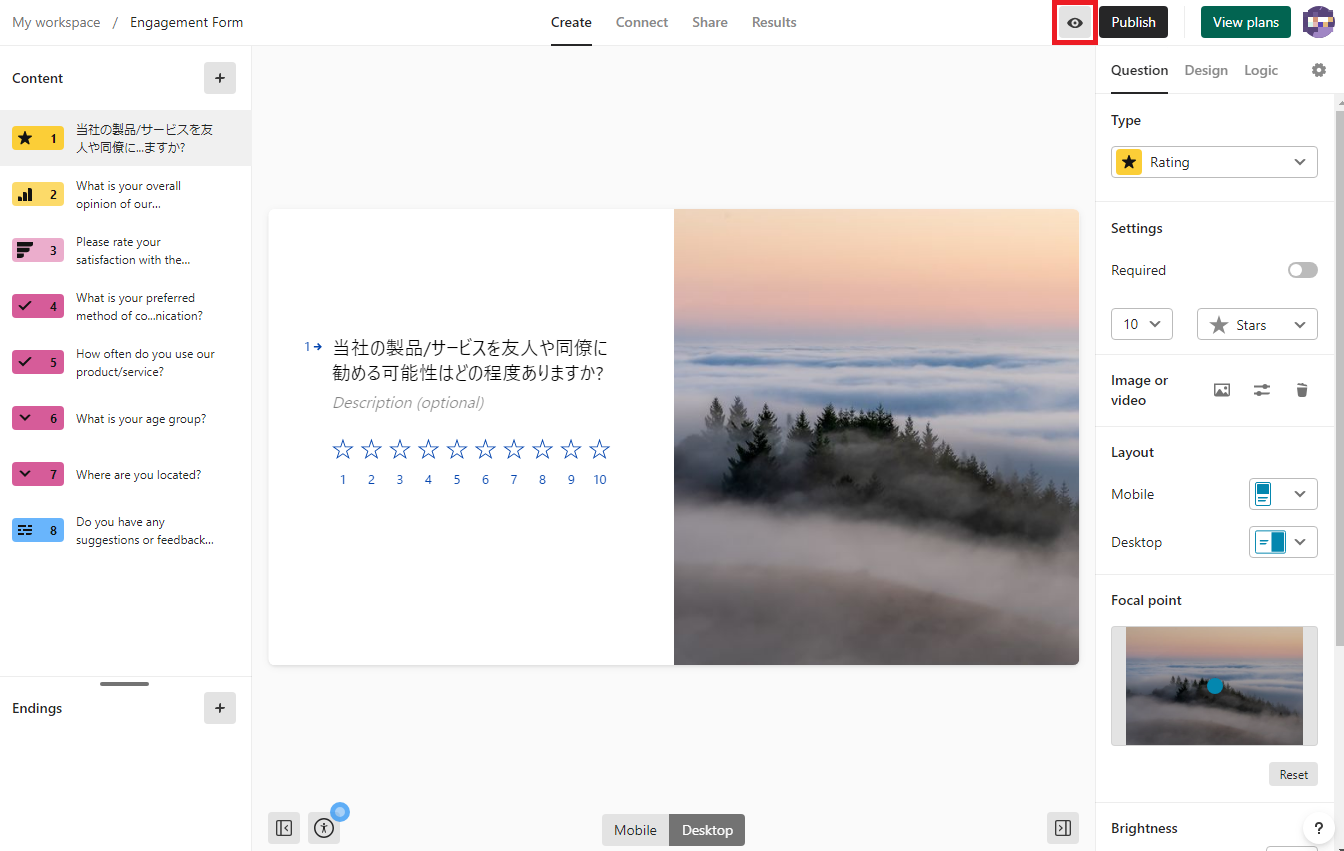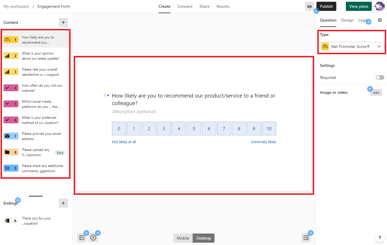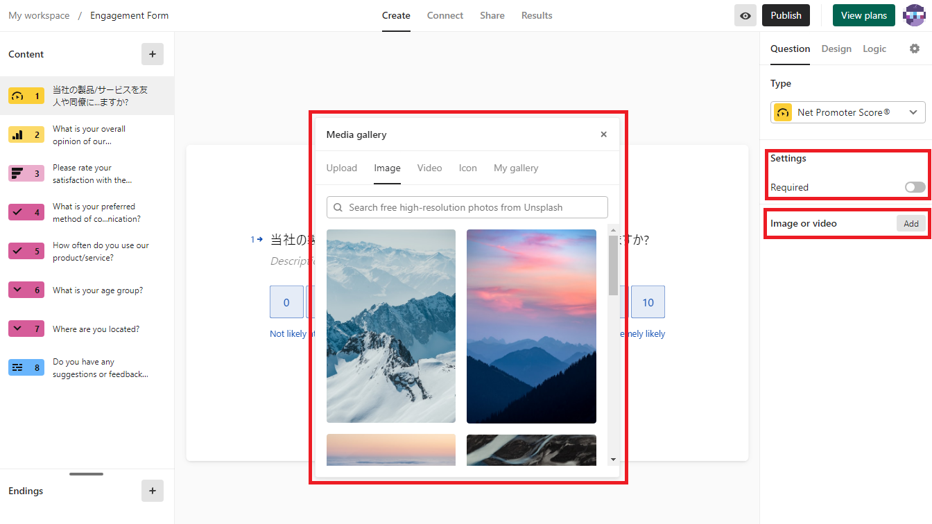 スライダーや評価、画像などの対話的な要素を組み込むことができます。ユーザーとのより高い対話性により、データ収集を強化できます。
