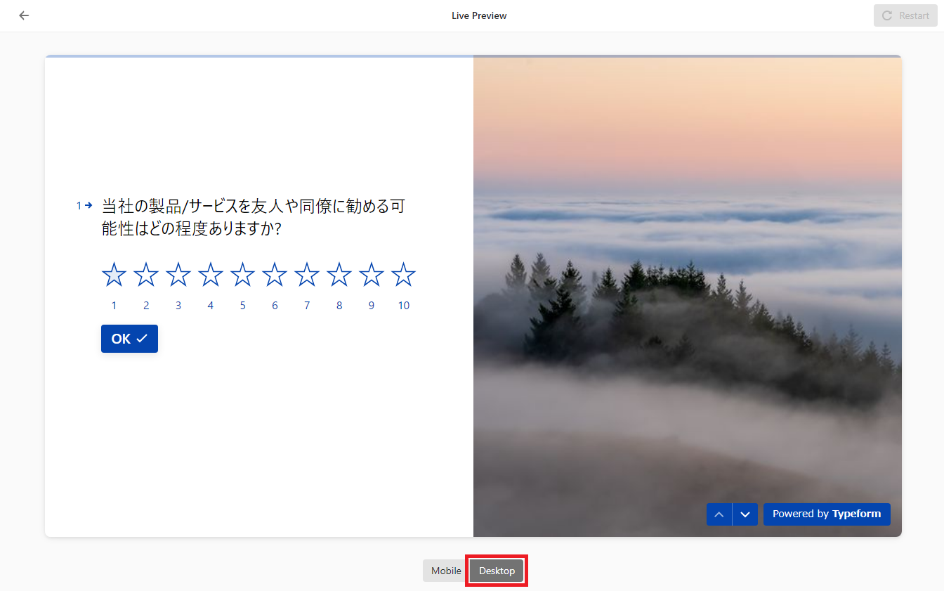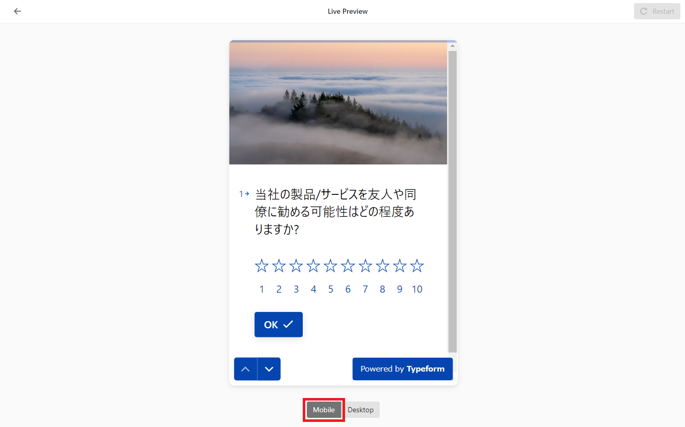 Typeformはモバイルデバイスからも利用でき、レスポンシブデザインをサポートしています。
